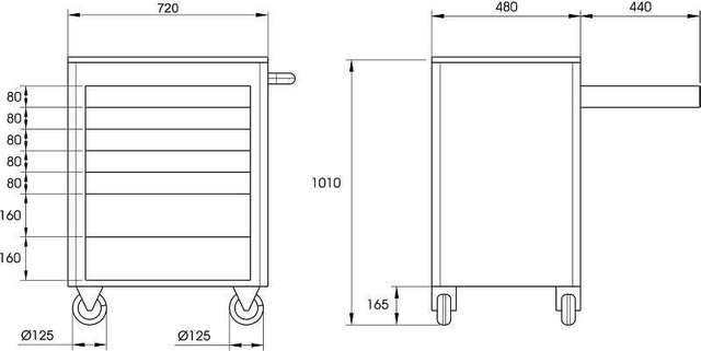 Tragkraft pro Schublade 20 kg bzw. die beiden unteren Schubladen 30 kg