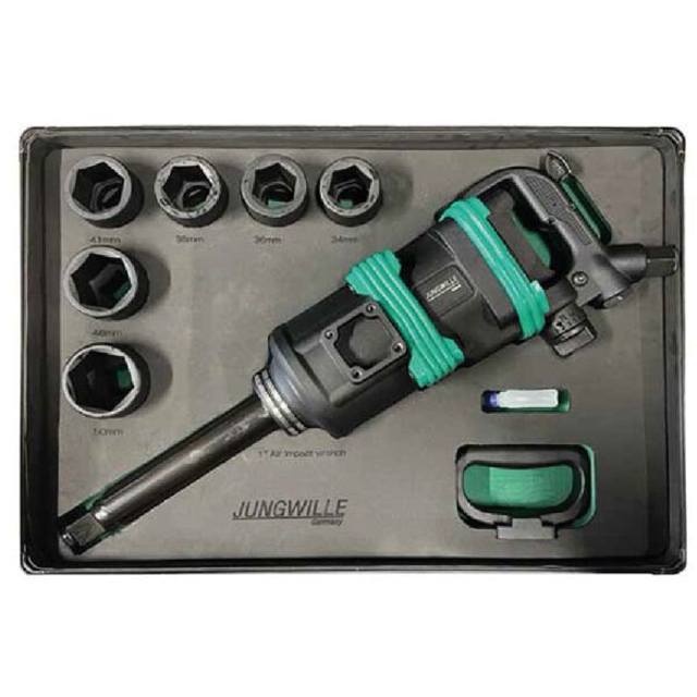 Dieser Jungwille Schlagschrauber-Satz ist Lieferung komplett mit einem 1″ Schlagschrauber, sechs Steckdosen mit 34, 36, 38, 40, 41 und 50 mm, ein männlicher Nippel, ein Öler und ein stabiles Kunststoffgehäuse. Das maximale Nm für diesen Schlagschrauber beträgt 3000Nm. Das macht diese Maschine ganz geeignet für schwerere Arbeiten Futter. Das Jungwille 1″ Pneumatik-Schlagschrauber-Set ist das perfekte Werkzeug für Profis im Handwerk, sondern Heimwerker kommt bestimmt gut damit zurecht können bei schwierigen Schrauben, Muttern od. dgl Radkappen müssen festgezogen oder gelöst werden.