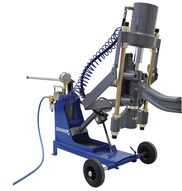 Zum schnellen und fachgerechten Aus- und Einpressen von NFZ-Achsschenkelbolzen.Die nach neuesten Sicherheitsanforderungen entwickelte Achsschenkelbolzen-Presse mit einstellbarem Pressrahmen ermöglicht durch ihre kompakte und speziell durchdachte Bauweise eine einfache, zeitsparende und vor allem sichere Handhabung. Der kraftvolle 65 t Hydraulik-Zylinder mit integrierter Handpumpe und Pneumatik-Schnellhubventil gewährleistet ein problemloses Auspressen auch von stark festsitzenden Achsschenkelbolzen.