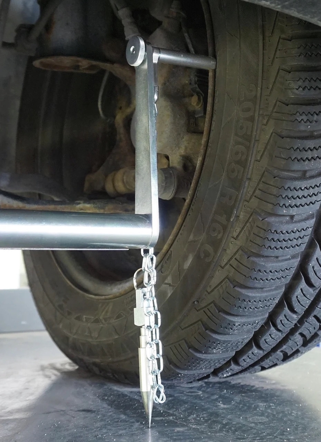 Zur schnellen und einfachen Spurdierenzmessung über das innere Felgenhorn.
